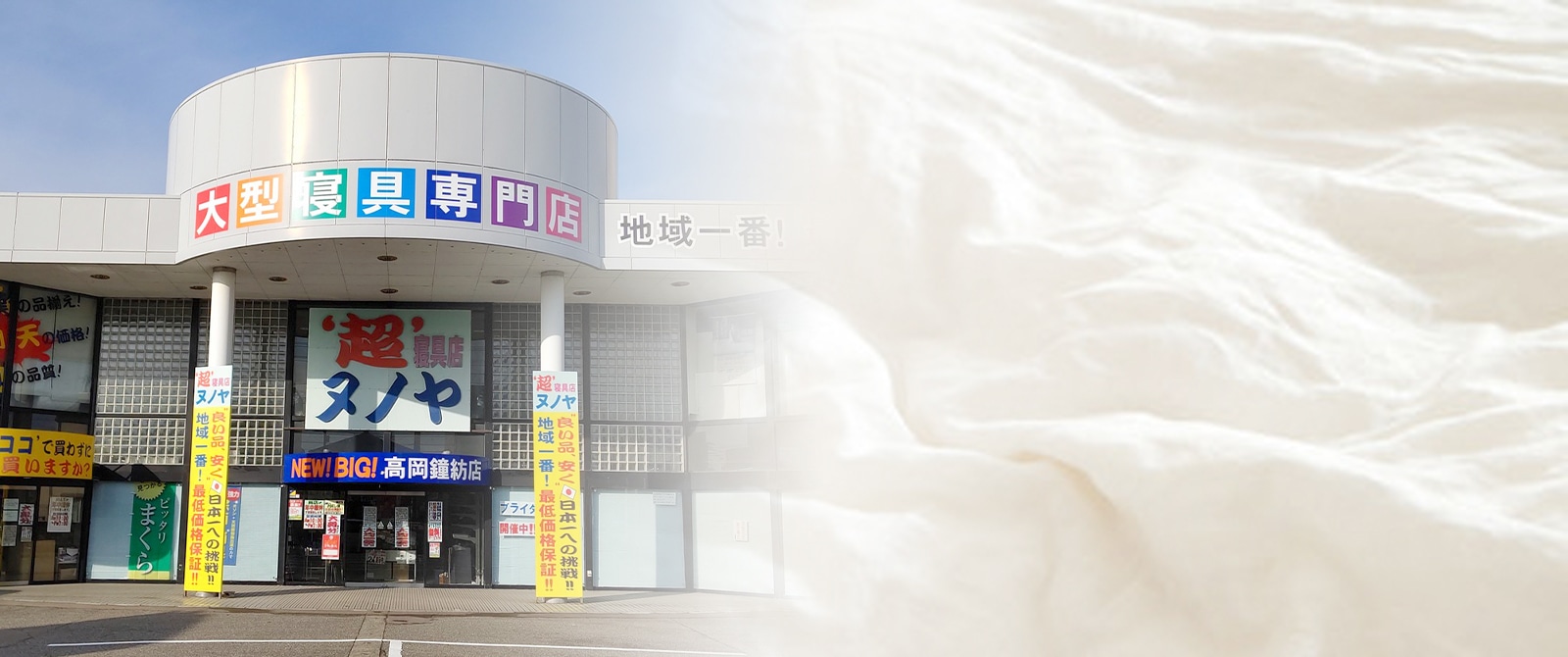 当社は、富山県高岡市に本社を置く、寝具の大型専門店でございます。