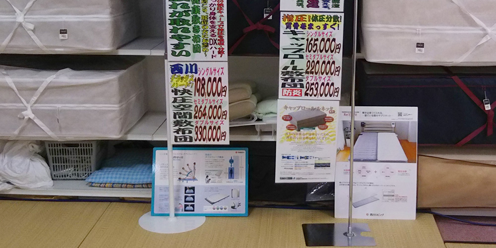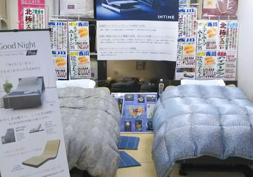 お試し寝をしていただきながら少しでも快適に眠れるように、お客様にあった寝具をご紹介いたします。