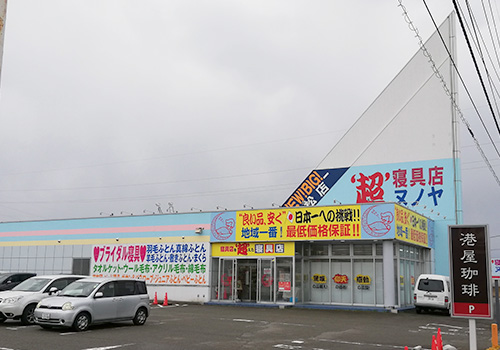 ‘超’寝具店ヌノヤ小松店は、県道305号線(旧国道8号線)沿い木場潟西園地近くで、小松市内、加賀市内からも30分圏内に位置しています。