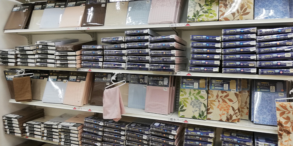 ‘超’寝具店ヌノヤ小松店は、石川県内6店舗の中でも特に大型店舗として位置づけされ、一年を通して季節問わず寝具専門店として多数商品を展示しております。
