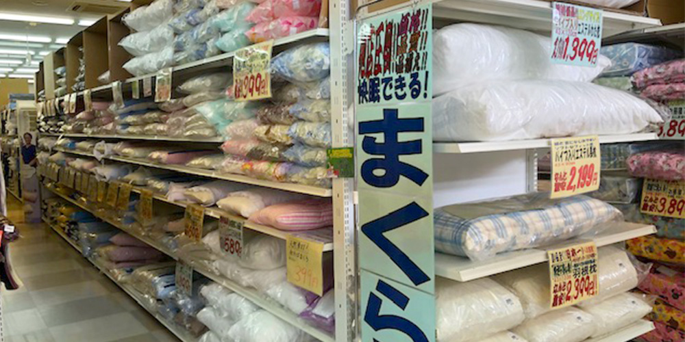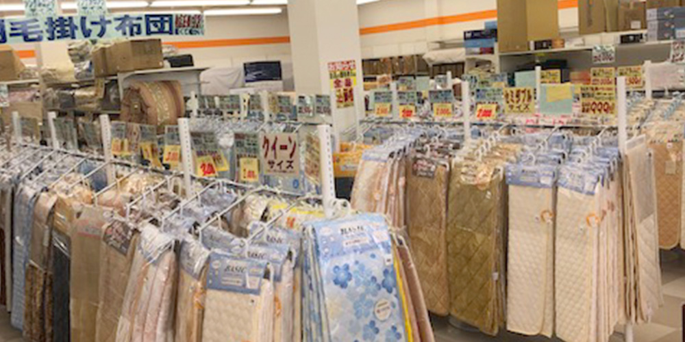 掛け布団、敷布団、まくら等、品揃えは地域一番。健康を考えた快眠寝具も豊富に取り揃えております。