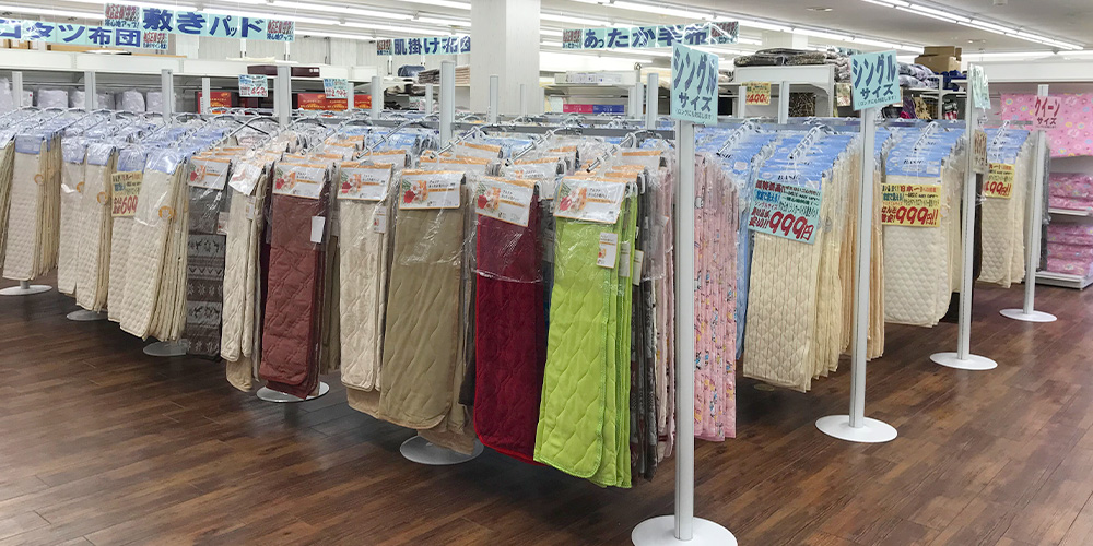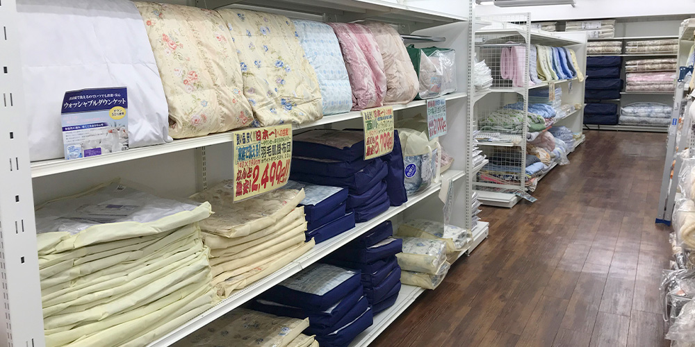 季節毎に必要な寝具を豊富に取り揃えた大型寝具専門店です。
